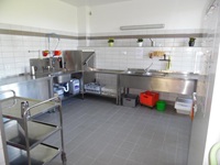 Hier wird vormittags geschnibbelt, gekocht und gespült bis die Hände müde werden. Wenn zum Mittag der Hunger von mehr als dreißig Menschen gestillt werden möchte, muss morgens viel vorbereitet werden. Die Töpfe sind groß – wir brauchen also viele Zutaten, um sie zu füllen. Unsere feste Küchenmann- und Frauschaft ist ein eingespieltes Team, sodass das Essen immer pünktlich auf dem Tisch steht.